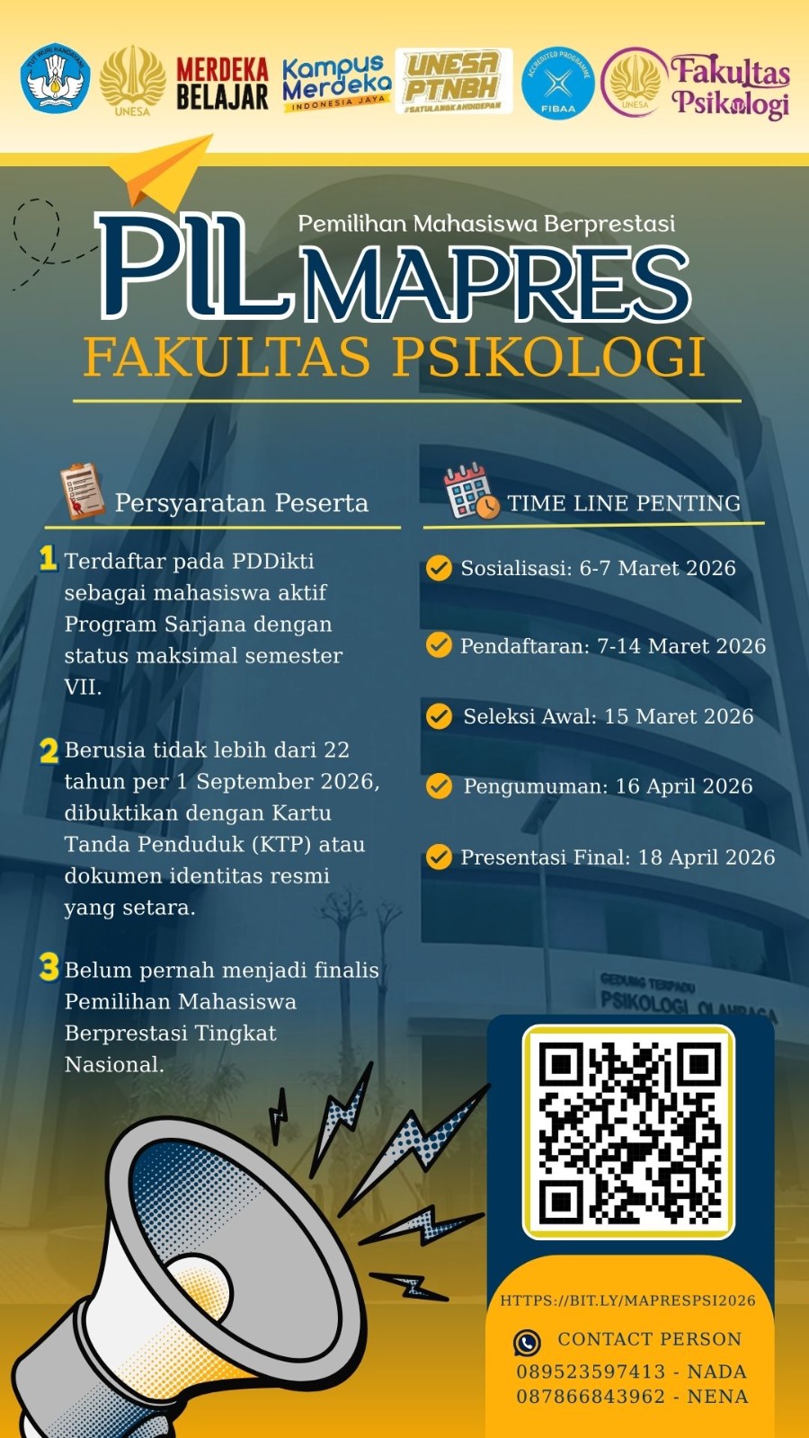 Program Studi S1 Psikologi Universitas Negeri Surabaya (UNESA) menggelar kegiatan Pengarahan Percepatan Tugas Akhir dan Kelulusan bagi mahasiswa Angkatan 2022. Kegiatan ini diikuti oleh seluruh mahasiswa S1 Psikologi Angkatan Tahun 2022 sebagai bagia